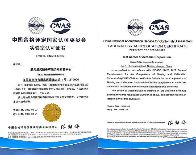 中國合格評定國家認可委員會(CNAS)實驗室認可證書